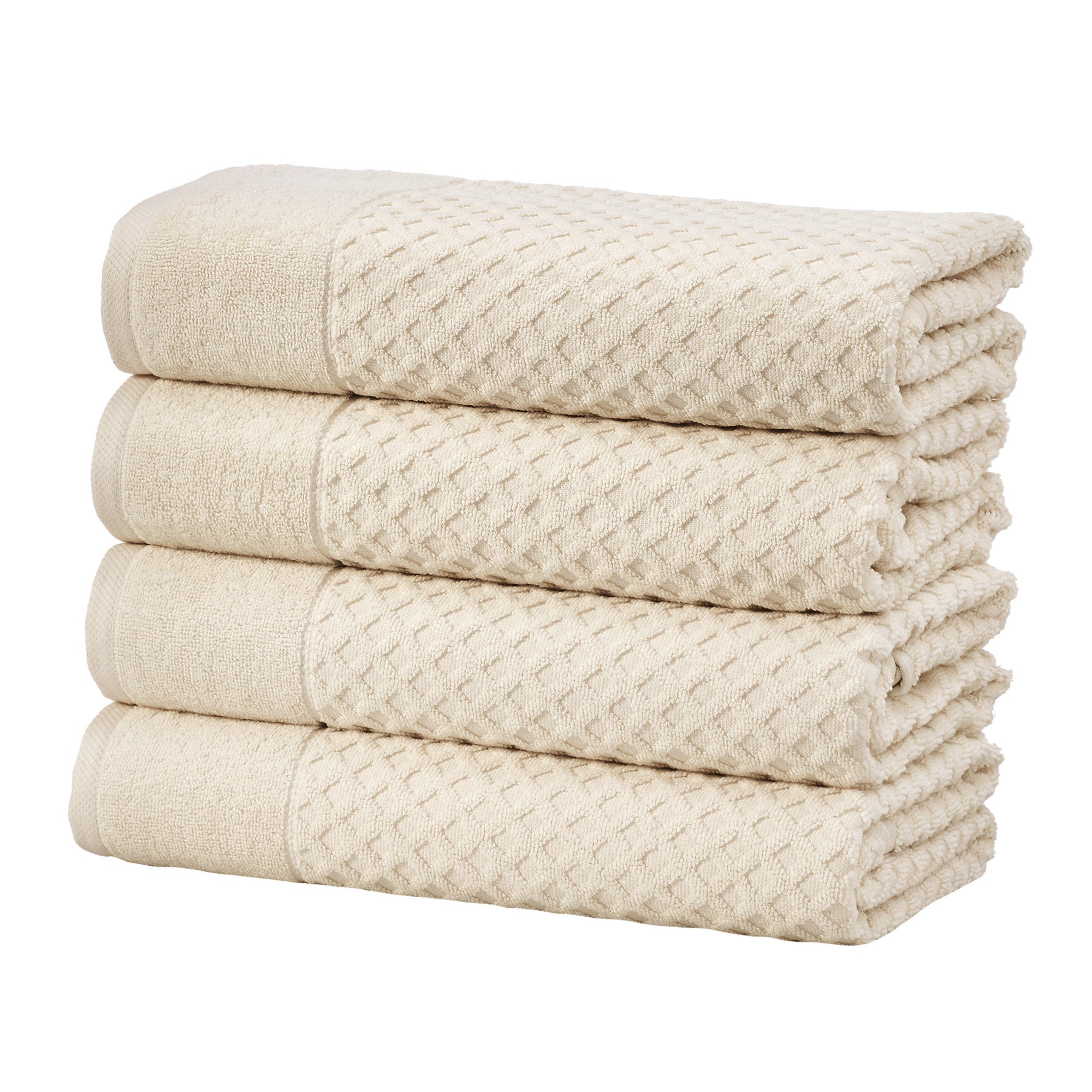 Renew your bathroom's decorative appeal with ultra-soft, textured bath towels. These towels are made from low-twist, two-ply cotton fibers, meaning they are plush, incredibly soft and absorbent, and durable. Made to last you many washes and get softer with each use - perfect for kids and pets. The diamond waffle texture creates a unique visual interest, these bath towels are both functional and decorative. The core colors are versatile and sure to match your bathroom aesthetic with ease.