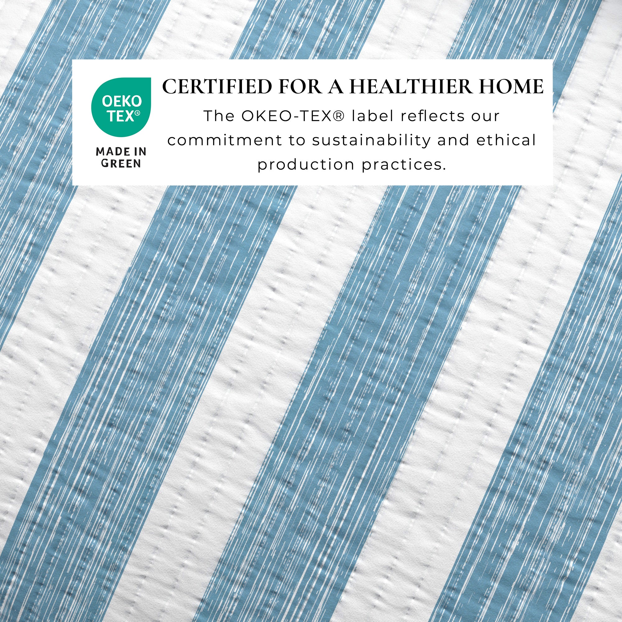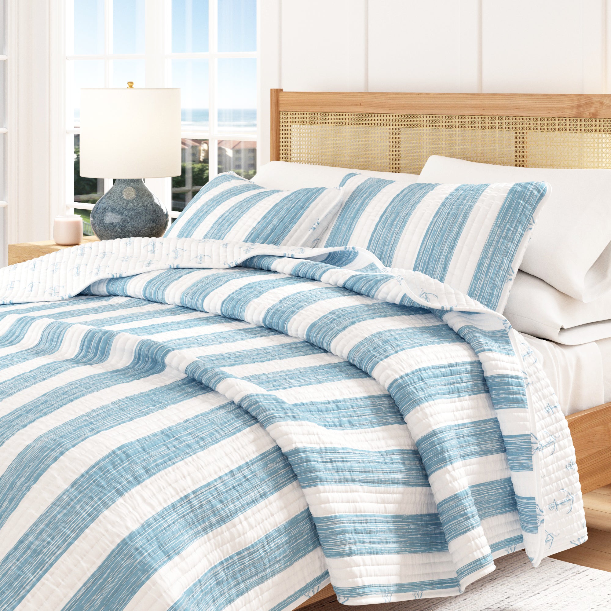Enjoy a seaside sleeping experience anytime thanks to the Casco Bay Collection's 3-Piece Quilt Set. Farmhouse meets the ocean in a taupe and blue color.