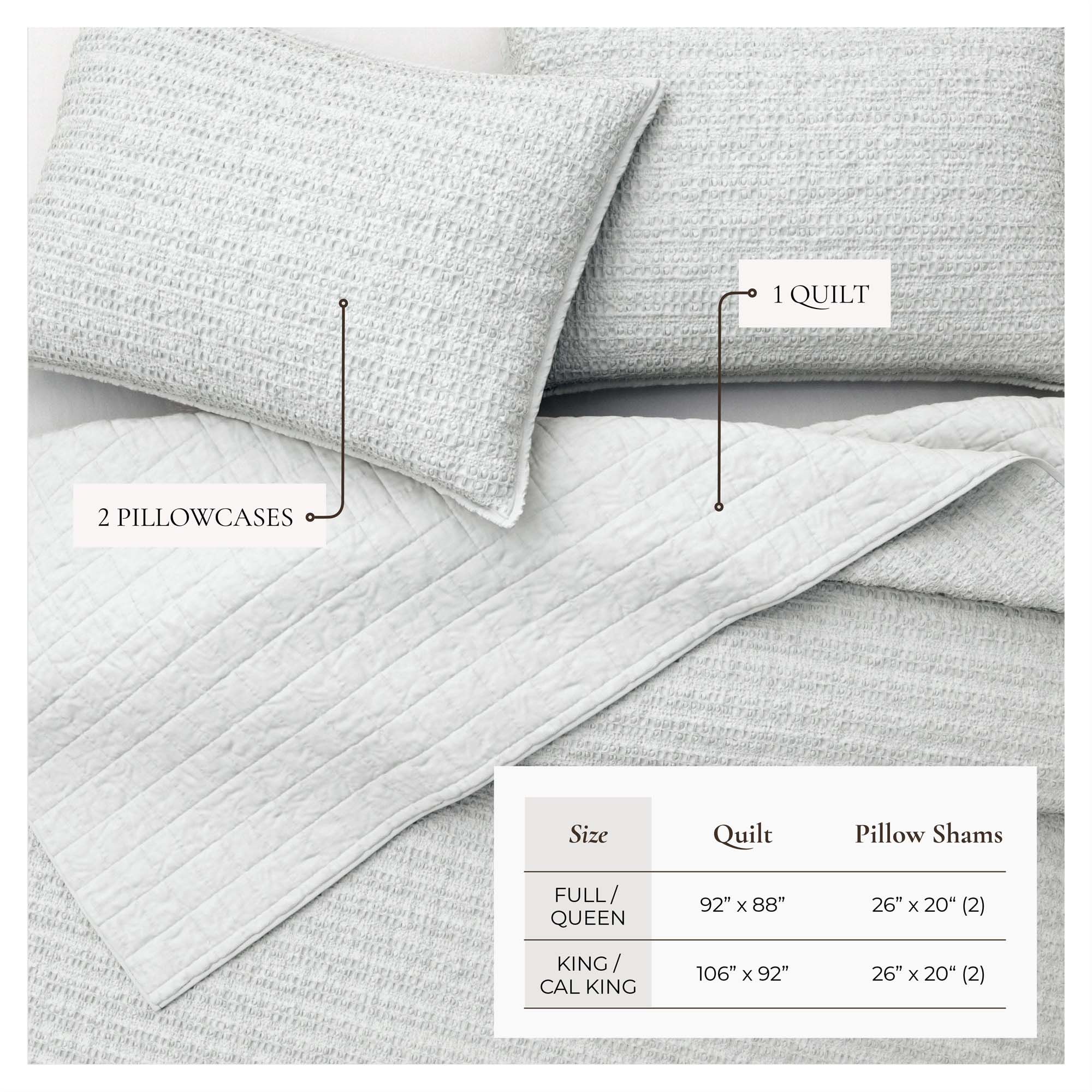 Instantly make your bedroom comfier and more inviting with this 100% cotton waffle weave quilt and sham set. We've garment washed it for extra softness, so it feels relaxed and "already loved" from the very first night. It comes in go-with-anything colors, making it super easy to mix and match with your current bedding, adding a touch of cozy style that works year-round. Plus, you can feel really good knowing this set is made without harmful chemicals and in a way that's kind to our planet.